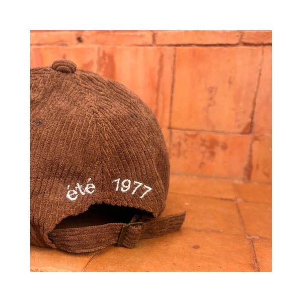 Casquette Bichette en velours côtelé Brown, sublimée par une broderie Burnt Orange.